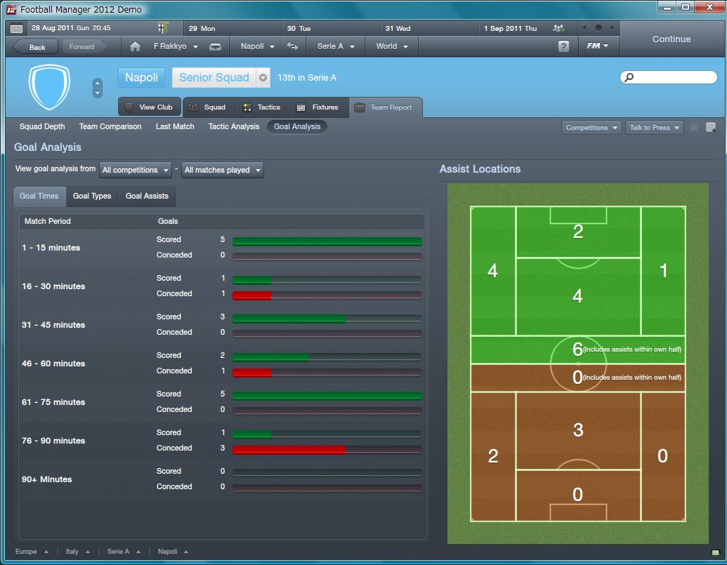 Napoliで始めたのですが、結局、半日やって公式戦1試合目までしかいきませんでしたw