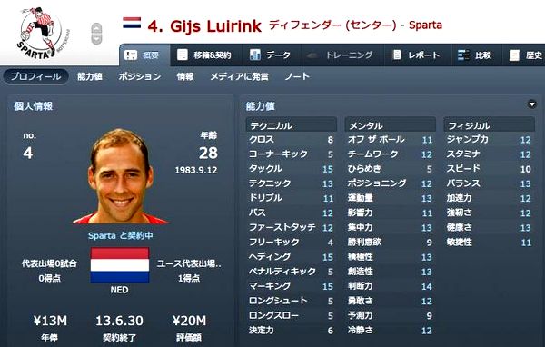 某チームでプレイしてたとき、DF獲りすぎて移籍後すぐにレンタルに出したといういわくつきの選手だw