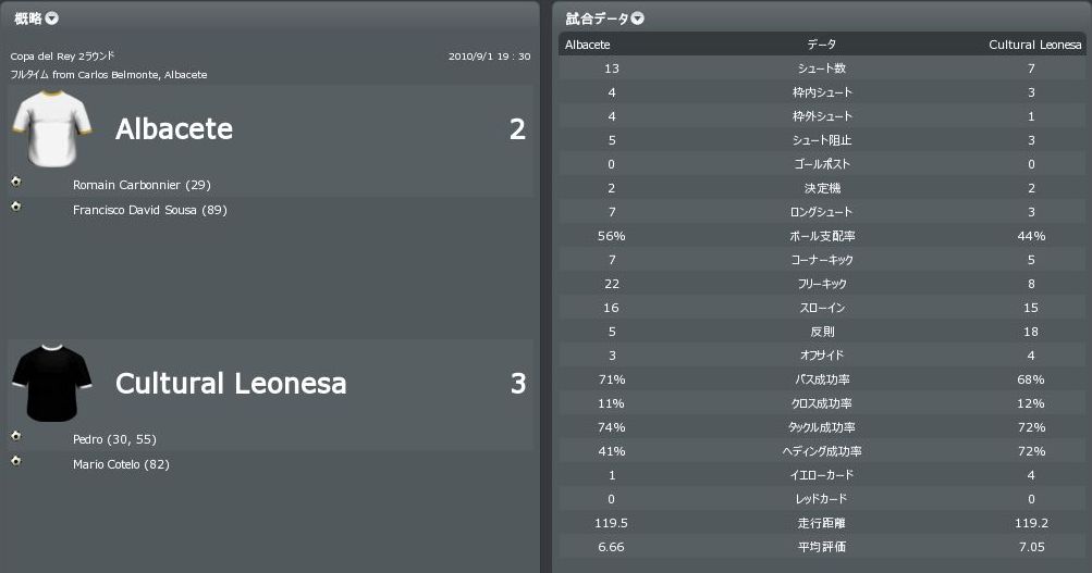 2010/8/28 スペイン2部開幕戦 vs Alcorcon(A)