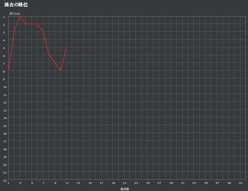 これで5位浮上。昇格圏内あらそいはわずかなポイント差を競う展開になっている。