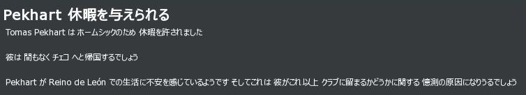 10月17日、若手FWのPekhartがホームシックになっていたため、一度帰郷を許す。