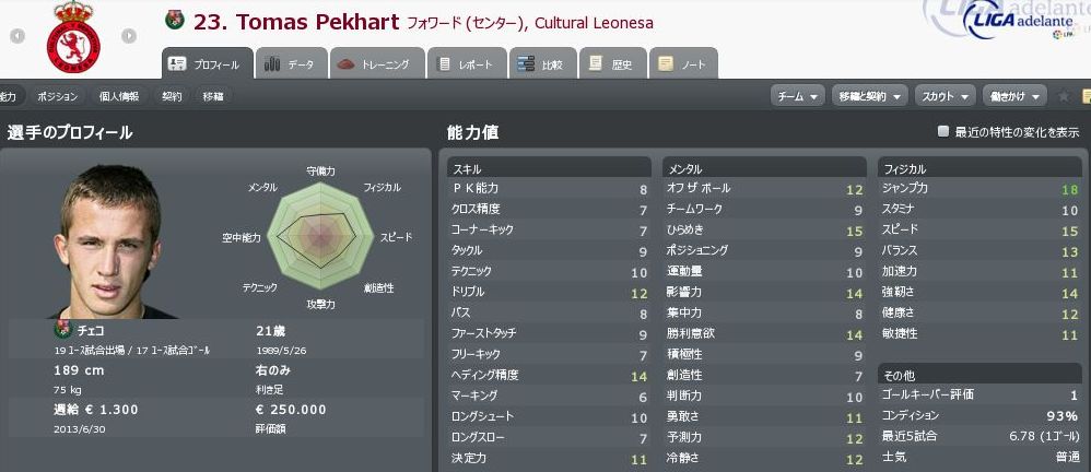 | Tomas Pekhart | F C | CZE | 21 | 230K | スピードもある若手の長身FW |