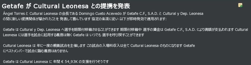 提携先を探していたところ、1部のGetafeと提携。
