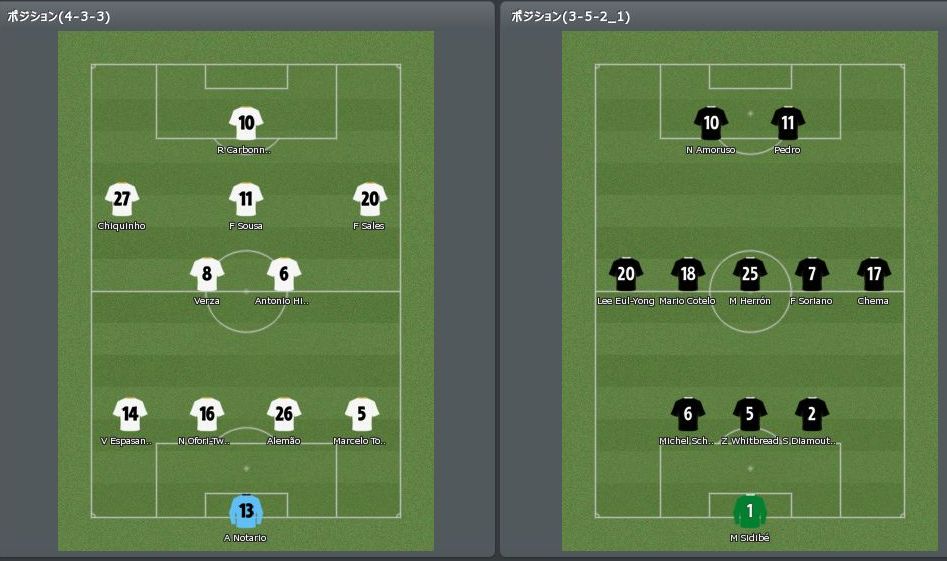 本来ならCoteloの位置にBarajaなのだが、怪我のため出場できていない。