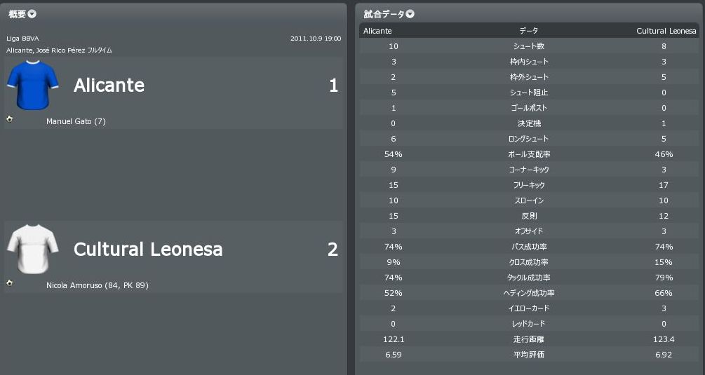 2011/10/9 リーグ戦第7節 vs Alicante(A)
