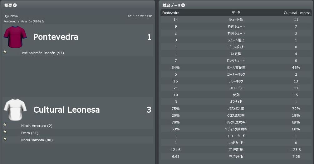 2010/10/22 リーグ戦第9節 vs Pontevedra(A)