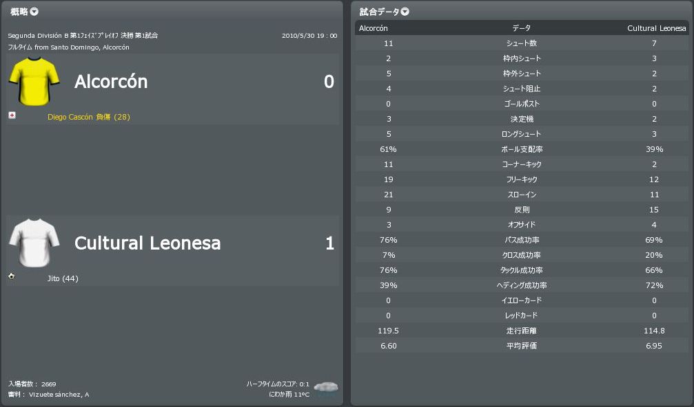 2010/5/16 第1昇格プレイオフ準決勝1stLeg. vs Alicante(A)