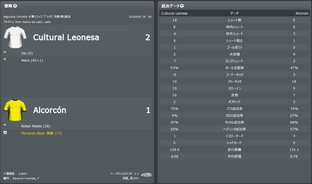 しかし、ホームのPonferradinaも後半に同点ゴール。