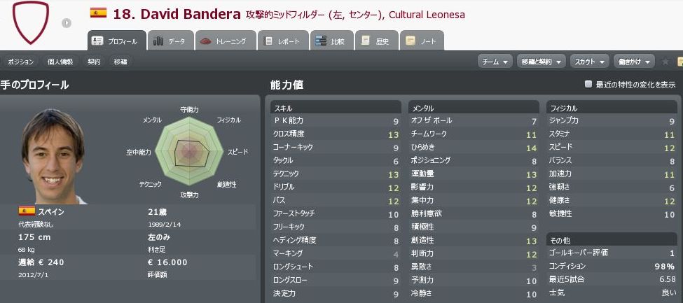 スピードとドリブルが15と優れ、決定力12はチーム内最高LV・・・w