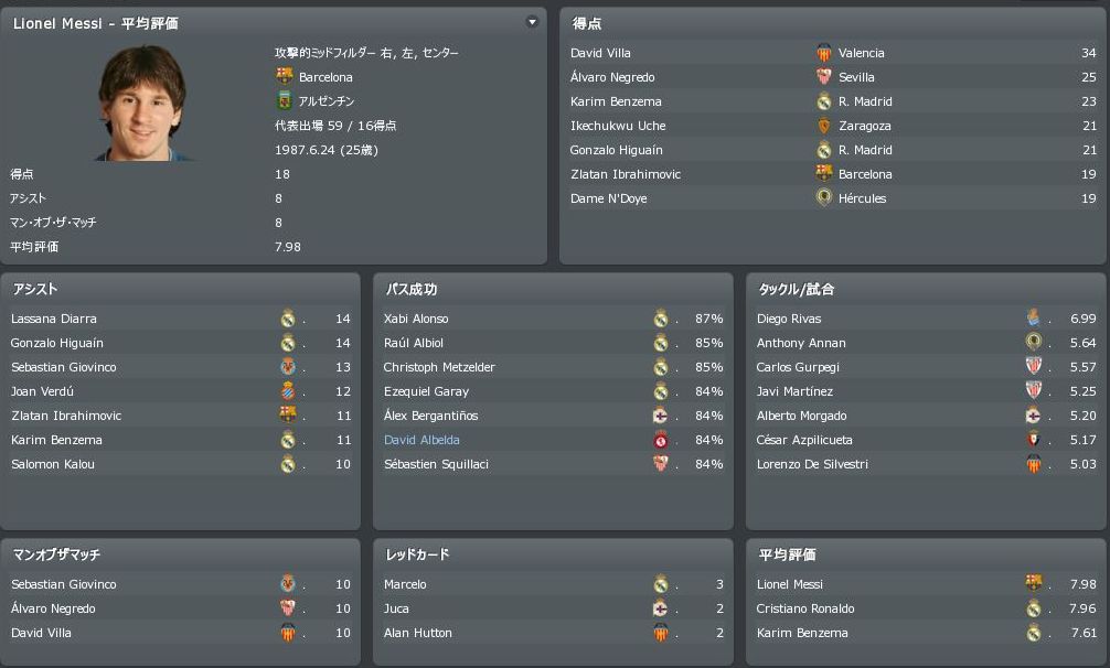 Culturalからはパス精度でAlbelda、表示されていないがアシストでSaricが同率7位(10アシスト)だった。
