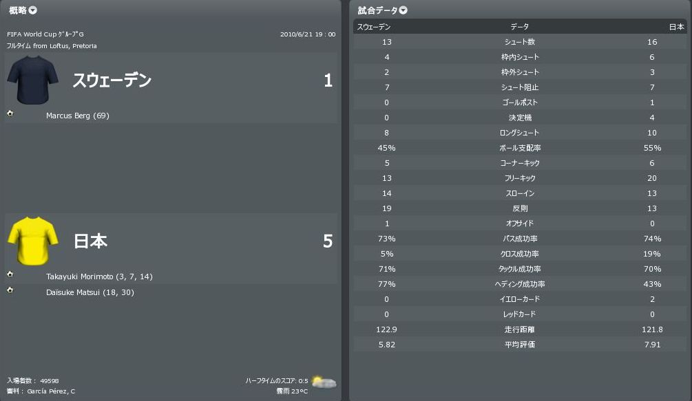2010/6/21 W杯グループ予選第2節 vs スウェーデン