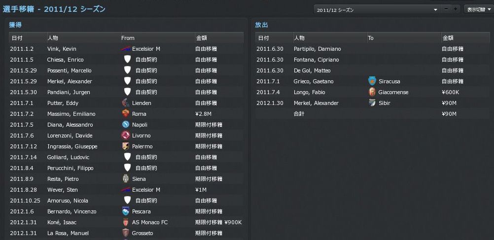 というわけで、フリーとレンタルで大量に獲得、選手を試しながら戦力を整えていった。