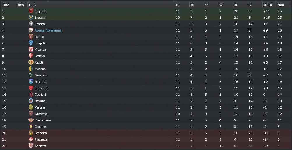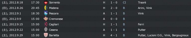 最後のBarlettaはゲーム開始時セリエC1/B、そこから5位ながらセリエBに昇格。