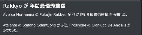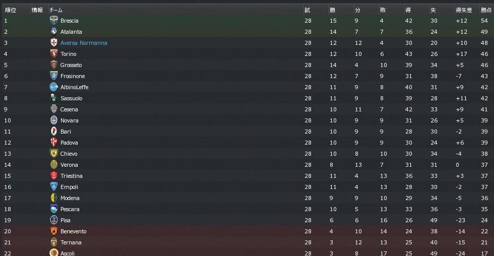 惜しくも優勝は逃してしまいましたが、2年目にしてセリエA昇格というのはかなりよかったですね。