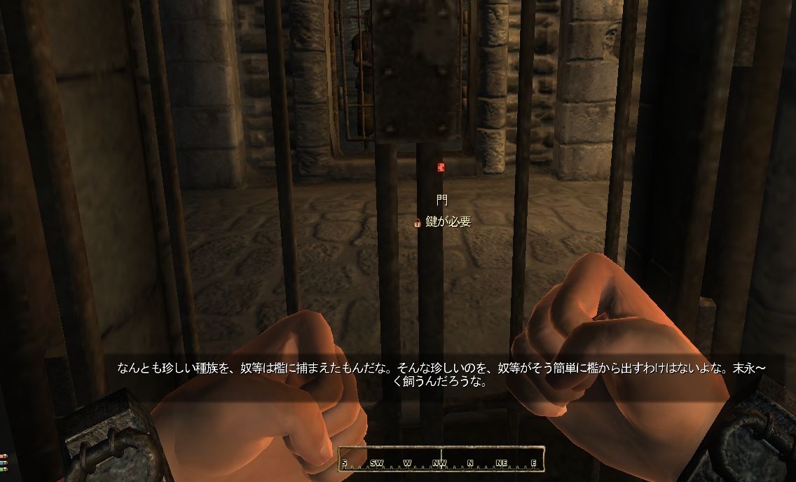 声の方をみると、向かいの牢獄にいるダークエルフ(この世界ではダンマーと呼ばれているらしい)らしき男が、