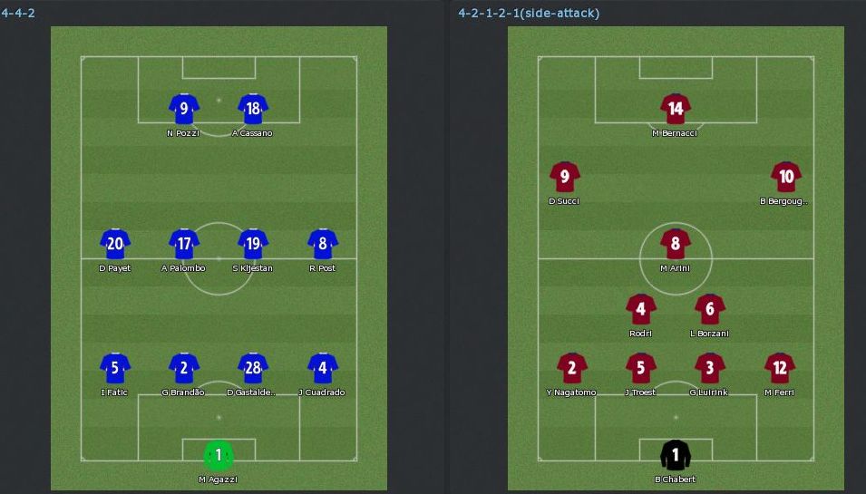 中3日、しかも3日後にはサンプドリア戦が控えているので、2軍の4-2-3-1で行く。