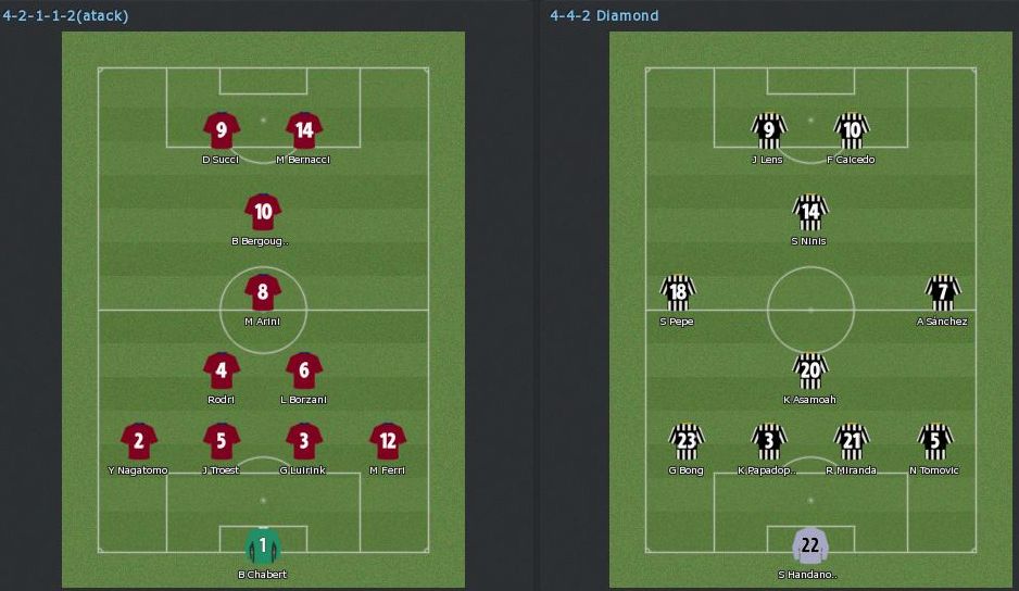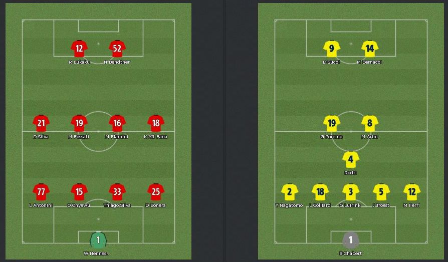 DF4人は総入れ替え(Ferriは復帰だが)とFW一人が入れ替わり、MF陣はそのままという感じ。