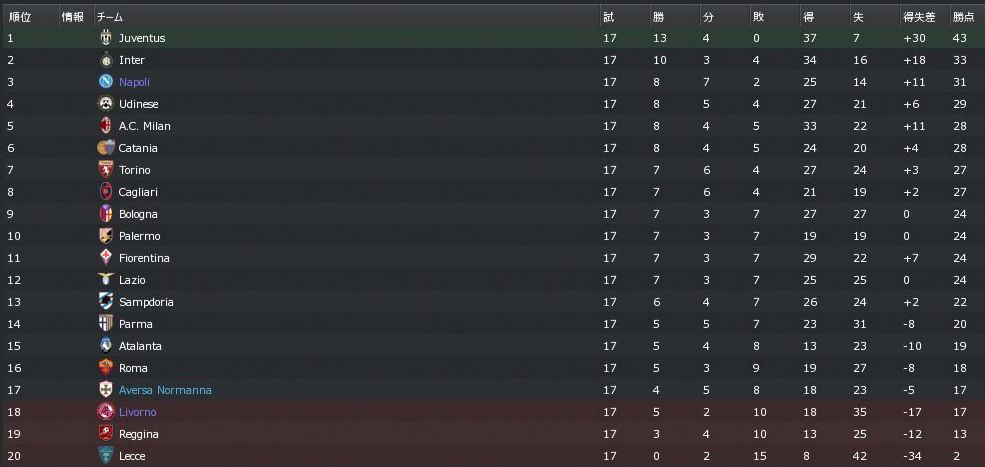 セリエAの戦いも折り返しに。