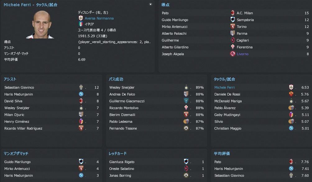 サンプドリアはカッサーノ君が健在。(リアルでは会長と喧嘩して放出)