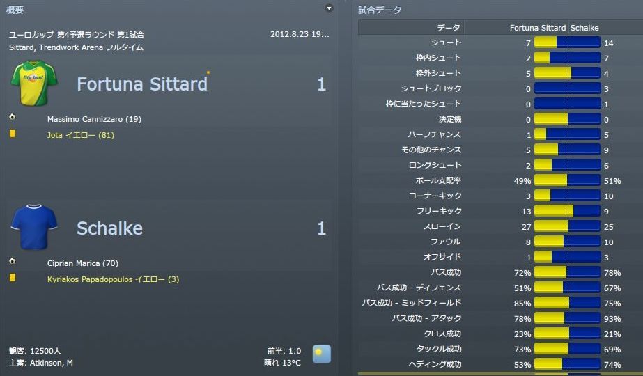 2012.8.23 EL第4予選 1st Schalke(ドイツ1部5位) Home