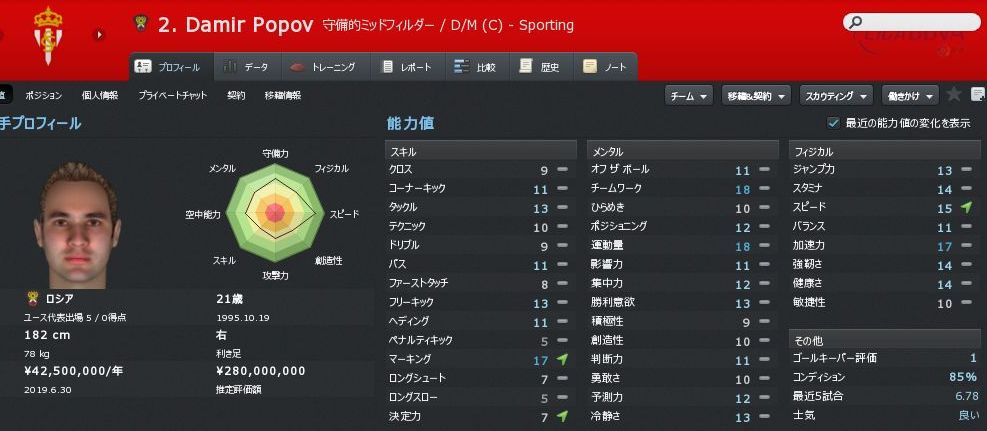 ロシアのSibirからフリーで獲得した若手ボランチのPopov