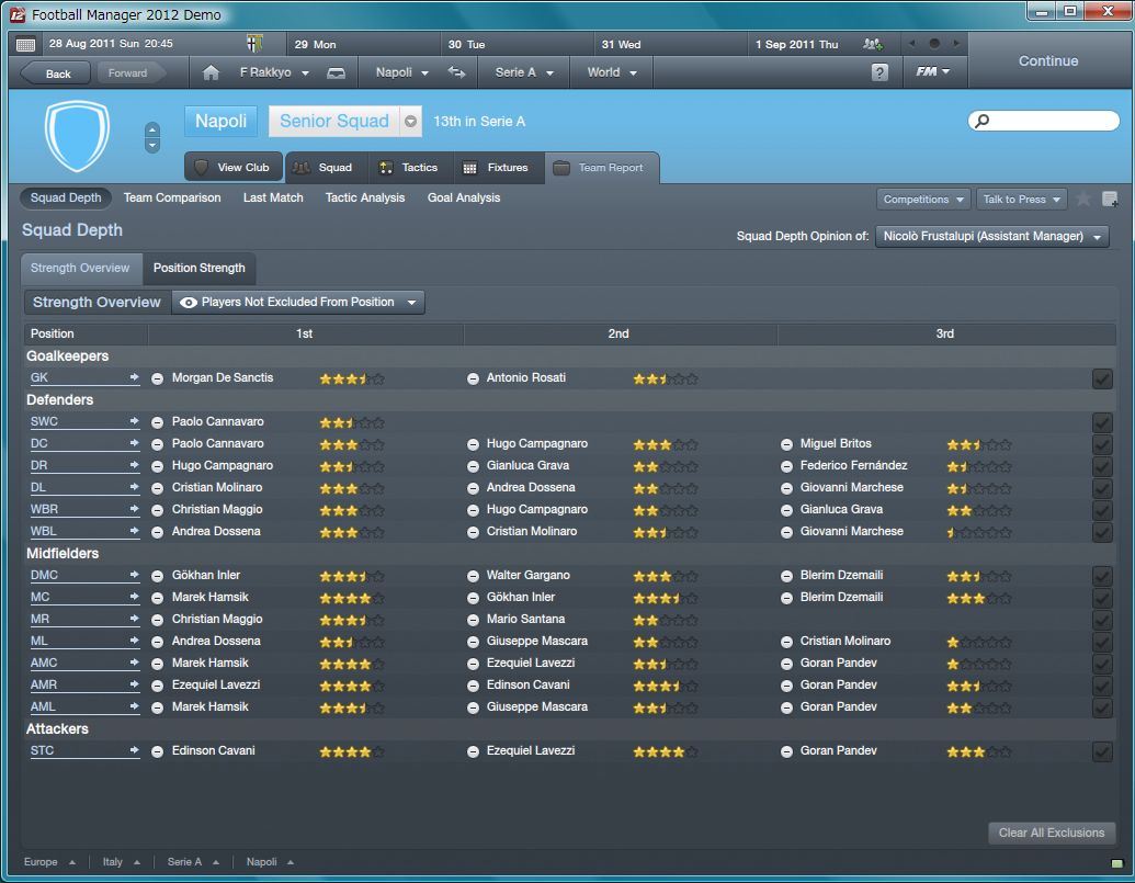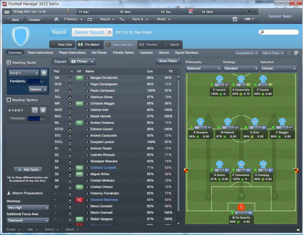 Napoliで始めたのですが、結局、半日やって公式戦1試合目までしかいきませんでしたw