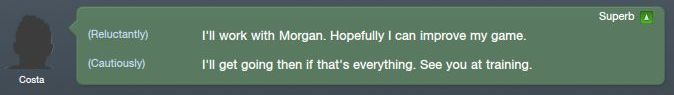 また選手との個人会話でも、口調が選べますし、選手の口調も表示されるようになりました。