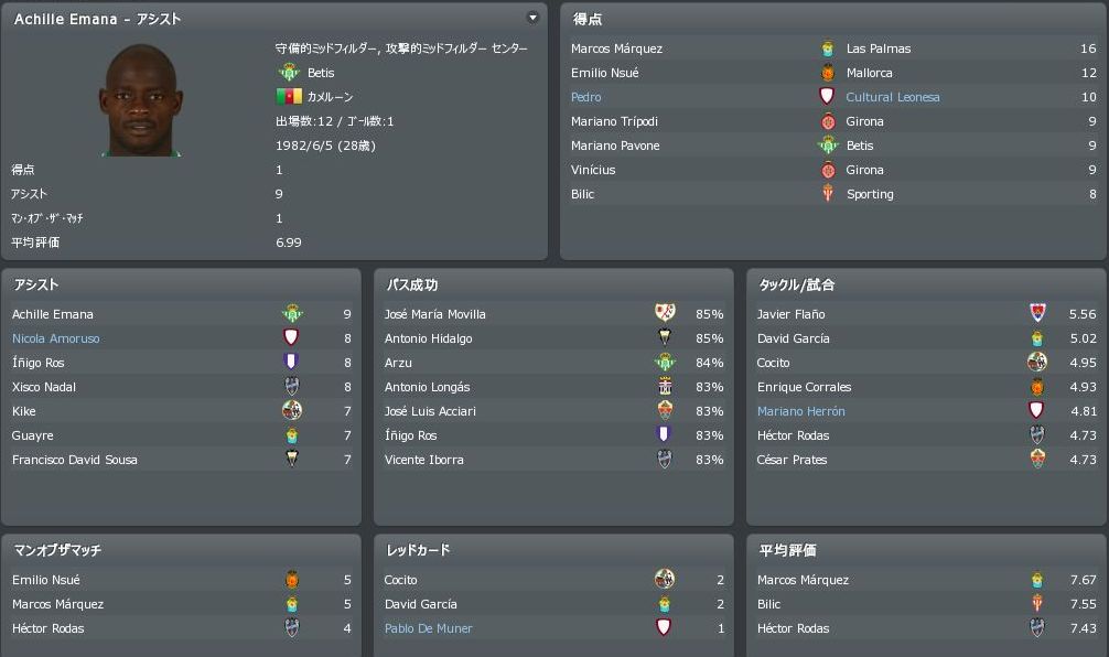 | David Bandera | AM LC | ESP | 22 | 100K | 創造性だけだが、これがいい仕事するんだよね・・・ |