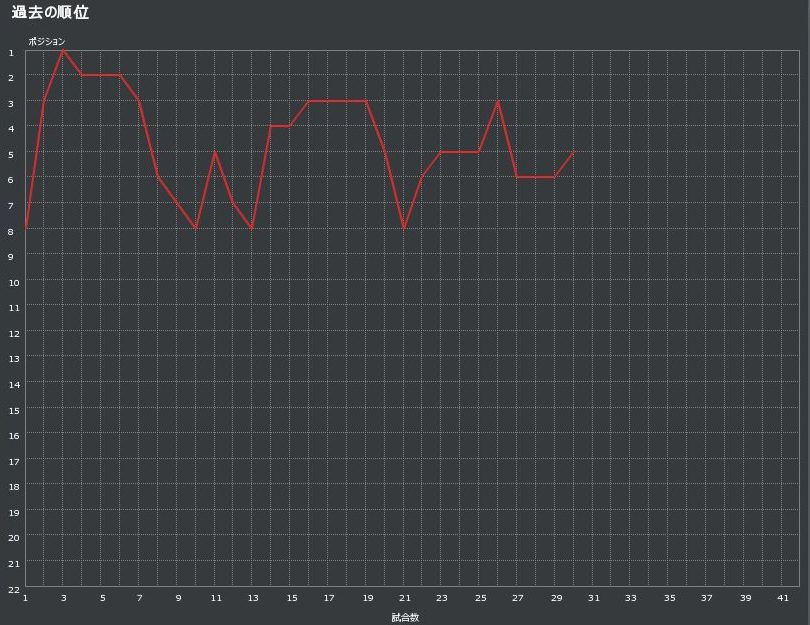 現在チームは3位と勝ち点5差の5位。