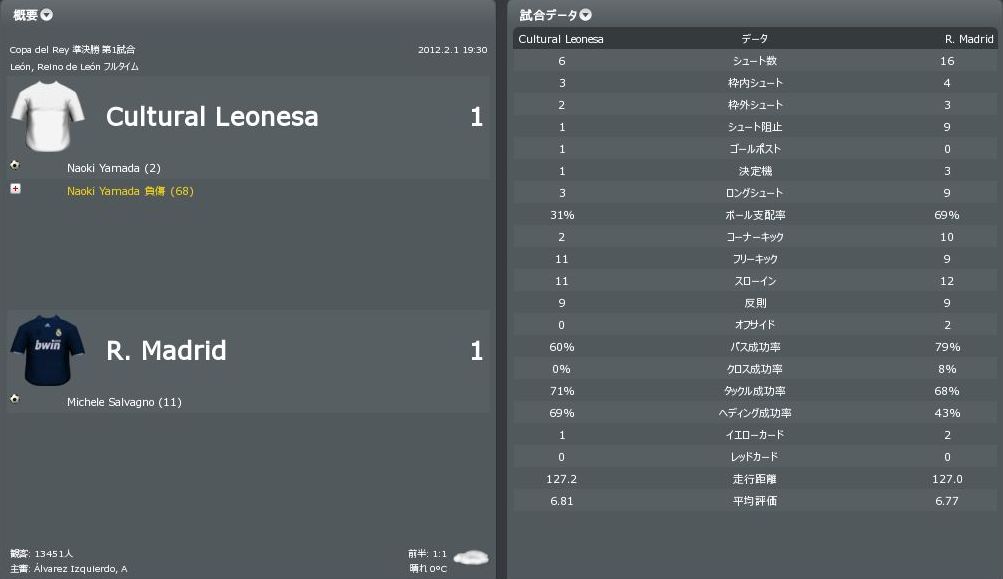 Cultural11/12(5) 国王杯でレアルと再戦!結果はいかに